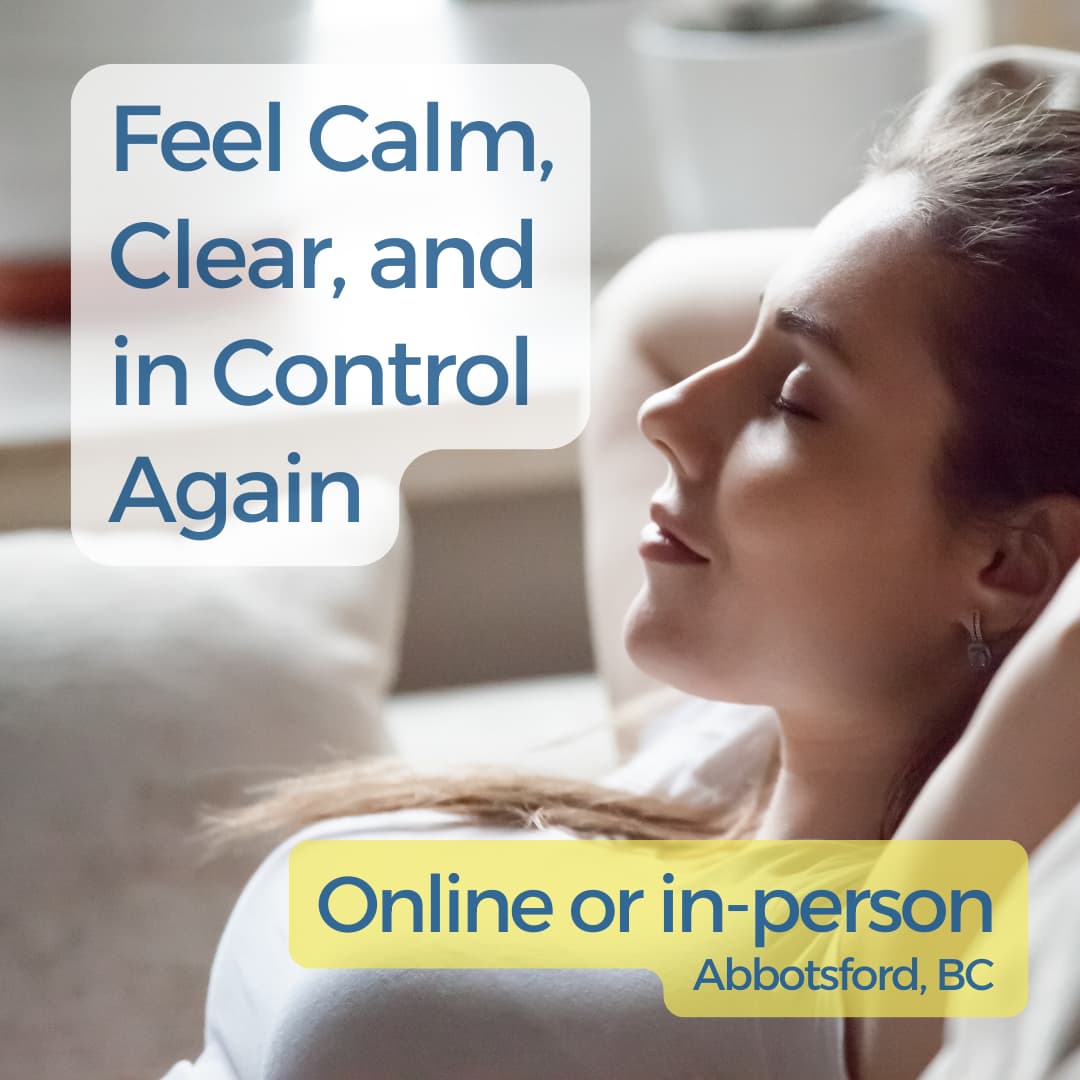 60 minute online hypnosis or in-person hypnotherapy (Abbotsford, BC). Special introductory rate for your first full hypnotherapy session in areas of weight loss, stress and anxiety management, menopause and more.